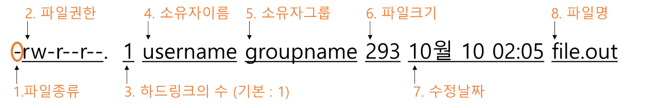 -rw-r--r--. 1 username username 2219 10월 18 23:19 file1 #현재 디랙토리 내 파일